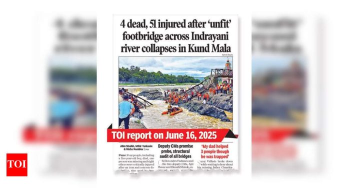पुणे – महाराष्ट्राचे सार्वजनिक बांधकाम विभाग (पीडब्ल्यूडी) मंत्री (पीडब्ल्यूडी) शिवेंद्राजे भोसले यांनी मंगळवारी म्हटले आहे की, आता राज्य बीजेपीचे अध्यक्ष असणा Rave ्या रवींद्र चावन या व्यक्तीने आता राजापदाचे अध्यक्ष रवींद्र चावन यांच्या मागणीनंतर कुंड माला येथील इंद्रायणी नदी ओलांडून नवीन पुलासाठी काम ऑर्डर देण्यास विलंब करण्याची चौकशी सुरू केली आहे.भोसाले यांनी टीओआयला सांगितले, “आम्ही छाननीसाठी नवीन पुलाच्या प्रस्तावाशी संबंधित सर्व रेकॉर्ड आणि फायली मागितल्या आहेत.” या प्रकल्पासाठी गेल्या जुलैमध्ये crore कोटी रुपयांना मंजुरी देणा Chawan ्या चवन म्हणाले की, कामाचा आदेश देण्यास उशीर का झाला आहे हे शोधण्यासाठी सखोल चौकशीची आवश्यकता आहे. ते म्हणाले, “जर आमच्या विलंबामुळे लोक मरण पावले तर ते अस्वीकार्य आहे,” ते पुढे म्हणाले. 11 महिन्यांनंतर यावर्षी 10 जून रोजी सरकारने वर्क ऑर्डर जारी केली. रविवारी जुना फूटब्रिज कोसळला, त्यात चार लोक ठार झाले आणि इतर 54 जखमी झाले. पीडब्ल्यूडीचे माजी मंत्र्यांनी मुंबईतील पत्रकारांना सांगितले की, “मी पीडब्ल्यूडी मंत्री होतो आणि पूरक अर्थसंकल्पात तरतुदी गेल्या वर्षी विधानसभा निवडणुकीपूर्वी पुलाची निविदा प्रक्रिया पूर्ण झाली होती. पीडब्ल्यूडीने गेल्या वर्षी 24 जुलै रोजी प्रशासकीय मान्यता मिळाल्यानंतर एका वर्षाच्या आत प्रकल्प पूर्ण करण्याचे निर्देशही दिले होते.” ते म्हणाले की, निविदा प्रक्रिया आधीच पूर्ण झाल्यामुळे सरकारच्या बाजूने उशीर झाला आहे की नाही हे जाणून घेण्यासाठी ते भोसाले आणि पीडब्ल्यूडी अधिका officials ्यांशी बोलले.‘धोकादायक’ म्हणून घोषित करण्यात आलेल्या पुलाने आणि लोकांचा वापर टाळण्यासाठी बोर्ड लावले होते, तेव्हा पर्यटकांनी गर्दी केली होती, जेव्हा ते मार्ग दाखवतात आणि अनेकांना इंद्रायणी नदीत डुंबले.यापूर्वी, विरोधी पक्षाच्या सदस्यांनी गेल्या वर्षी चावन यांनी जारी केलेले पत्र सामायिक केले होते की सरकारने नवीन पुलासाठी 8 कोटी रुपये मंजूर केले होते. नवीन पुलाच्या निविदा प्रक्रियेचा तपशील सामायिक करणारे कार्यकर्ते विजय कुंभार म्हणाले की, नवीन पुलाची निविदा Oct ऑक्टोबर, २०२24 रोजी सुरू झाली आणि ती १२ ऑक्टोबरला आठ दिवसांच्या आत उघडली गेली. तथापि, कामकाजाचा आदेश जारी करण्यासाठी सरकारला आठ महिने लागले, असेही ते म्हणाले.“जर काम त्वरित सुरू झाले असते तर ही शोकांतिका रोखली जाऊ शकते. निवडणुकीच्या कालावधीत आपण कार्यरत सरकारच्या अनुपस्थितीचा विचार केला असला तरी, नवीन सरकार डिसेंपर्यंत जागृत होता. आणखी सहा महिन्यांच्या विलंबाचे कोणतेही औचित्य नाही. या विलंबासाठी या प्रक्रियेत सहभागी असलेले सर्व अधिकारी जबाबद