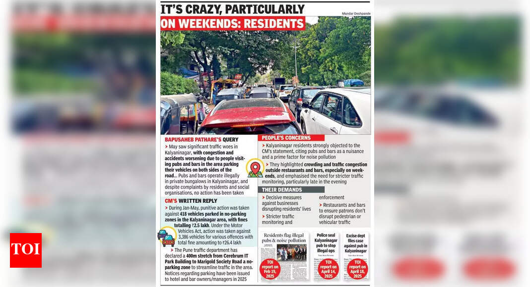 पुणे: कल्याणिनगरच्या रहिवाशांनी बुधवारी मुख्यमंत्री देवेंद्र फडनाविस यांच्या निवेदनावर जोरदार आक्षेप घेतला आणि त्या परिसरातील पब आणि बारविषयीची चिंता दूर केली ज्यामुळे रहदारीची कोंडी आणि अपघात होतील. त्यांनी आग्रह धरला की या आस्थापने खरोखरच एक उपद्रव आणि ध्वनी प्रदूषणासाठी मुख्य घटक आहेत.राज्य विधानसभेत वॅडगाव शेरीचे आमदार बापुसहेब पाथारे यांच्या क्वेरीला लेखी प्रतिसाद देताना फडनाविस यांनी मंगळवारी सांगितले की, कल्याणिनागरमधील पब आणि बारविषयीचे दावे आणि तक्रारींमुळे रहदारीची कोंडी होते आणि दुहेरी पार्किंगमुळे अपघात झाले आहेत. “पुणे ट्रॅफिक डिपार्टमेंटला २०२24 मध्ये फक्त दोन अर्ज (या संदर्भात) आणि २०२25 मध्ये चार प्राप्त झाले, त्यानंतर योग्य कायदेशीर कारवाई केली गेली,” असे राज्याचे गृहमंत्री असलेले फडनाविस यांनी लेखी उत्तरात सांगितले. मुख्यमंत्र्यांनी सांगितले की, परिसरातील सर्व रेस्टॉरंट्स आणि बार आवश्यक परवानग्या ताब्यात घेत आहेत आणि पोलिसांनी वाहतुकीच्या उल्लंघन करणार्यांविरूद्ध वेगवान कारवाई केली.कल्याणिनगर येथील रहिवासी राधिका डोसा यांनी आठवड्याच्या शेवटी रेस्टॉरंट्स आणि बारमध्ये गर्दी दर्शविली आणि या कालावधीत कठोर रहदारी देखरेखीच्या आवश्यकतेवर जोर दिला. “दिवसा ट्रॅफिक वॉर्डन आणि टो व्हॅन कल्याणिनगरमध्ये उपस्थित आहेत, परंतु रेस्टॉरंट्स आणि बार सर्वात व्यस्त असताना संध्याकाळी उशिरा त्यांना सर्वात जास्त आवश्यक आहे. रेस्टॉरंट्सने त्यांचे संरक्षक पादचारी किंवा वाहनांच्या वाहतुकीत अडथळा आणू नये याची खात्री करुन घेणे आवश्यक आहे,” डोसा म्हणाले.रहिवाशांनी सांगितले की त्यांनी कल्याणिनागरमधील रेस्टॉरंट्सच्या बाहेरील अराजक वाहतुकीचा मुद्दा ट्रॅफिक अधिकारी आणि पुणे नगरपालिका महामंडळ (पीएमसी) या दोघांनी केला. आणखी एक रहिवासी इलियान माधनी म्हणाले, “जेव्हा आम्ही रहदारी आणि आवाजाच्या समस्यांविषयी चिंता व्यक्त करतो, तेव्हा अधिकारी तात्पुरते कारवाई करतात, परंतु लवकरच समस्या परत येतात. रहिवाशांच्या सतत तक्रारींनंतर, परिसरातील एक छप्पर रेस्टॉरंट कायमचे बंद केले गेले. संरक्षकांचा रात्री उशिरा आवाज आणि अनागोंदी ही एक महत्त्वपूर्ण गडबड होती. आपल्या आयुष्यात व्यत्यय आणणार्या इतर व्यवसायांविरूद्ध समान निर्णायक उपाय म्हणजे तासाची गरज आहे. “कल्याणिनागर येथील तीन दशकांच्या रहिवासी रुजुता जोशी यांनी सीएमच्या विधानाच्या तुलनेत पब, बार आणि रेस्टॉरंट्समुळे होणा .्या वाढत्या उपद्रवावर शोक व्यक्त केला. “काही वर्षांपूर्वी, कल्याणिनागरकडे पब नव्हते. आता, प्रत्येक लेनमध्ये एक आहे असे दिसते. बाहेरील लोक या ठिकाणी गर्दी करतात