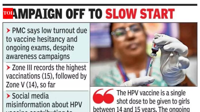 पुणे: केंद्र सरकारच्या मोफत HPV राष्ट्रीय लसीकरण मोहिमेअंतर्गत गेल्या पाच दिवसांत नागरी संस्था केवळ 44 मुलींना लसीकरण करण्यात यशस्वी ठरली, लसींचा संकोच आणि सध्या सुरू असलेल्या परीक्षेचा हंगाम हे कमी मतदानाचे कारण आहे — अनेक जागरूकता कार्यक्रम असूनही.पीएमसी झोन I मध्ये येरवडा-कळस-धानोरीआँडनगर रोड-वडगाव शेरीयेरियाचा समावेश आहे आणि पाच मुलींना लसीकरण केल्याचे दिसले. शिवाजीनगर-शोळे रोड, औंध-बाणेर आणि कोथरूड-बावधन या झोन २ मध्ये तीन मुलींना लसीकरण करण्यात आले. धनकवडी-सहकारनगर, वारजे-कर्वेनगर आणि सिंहगड रोड प्रभाग कार्यालयाचा समावेश असलेल्या झोन III मध्ये सर्वाधिक 15 मुलींना लस टोचण्यात आले. झोन 4 मध्ये हडपसर-मुंढवा, वानोवरी-रामटेकडी आणि कोंढवा-येवलेवाडी, झोन पाचमध्ये भवानी पेठ, बिबवेवाडी आणि कसबा-विश्रामबाग वाडा या भागात सात मुलींनी 14 मुलींना लसीकरण केले.कोथरूड-बावधन प्रभाग कार्यालयातील वैद्यकीय अधिकारी डॉ. अंजली टिळेकर म्हणाल्या, “सोशल मीडिया ॲप्सवर फिरणाऱ्या मेसेजेसमध्ये या लसीबाबत चुकीची माहिती पसरवली गेली आहे, जी नवीन नाही आणि गेल्या 15 वर्षांपासून बाजारात आहे. ती खाजगी रुग्णालये वापरत आहेत. शिवाय, खोट्या माहितीमुळे पालक भयभीत झाले आहेत, तर अनेक मुले परीक्षेची वाट पाहत शाळेत पोहोचत आहेत. मुलींना तेच समजावून सांगणे, ज्यांची संमती आवश्यक आहे त्यांच्याशी बोलण्यासाठी आम्ही पालक-शिक्षक बैठकीची वाट पाहत आहोत.दरम्यान, आरोग्य कर्मचाऱ्यांना घटनास्थळी मुलींची नोंदणी करण्याचे प्रशिक्षण दिले जाते. दिघे म्हणाले, “ही ९० दिवसांची मोहीम आहे आणि परीक्षा संपल्यानंतर आम्हाला सकारात्मक मतदानाची आशा आहे.”